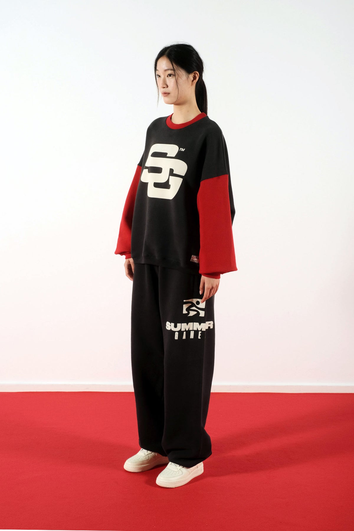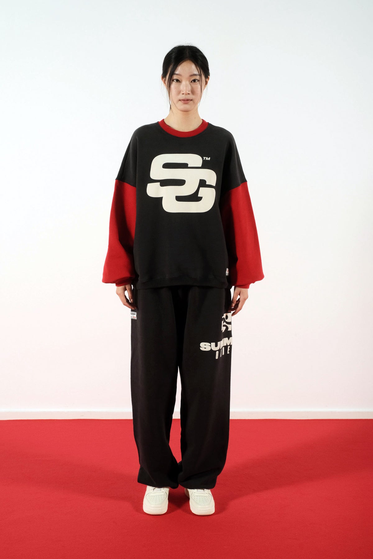 SG24 CONTRAST CREWNECK SWEATSHIRT - JET BLACK & SCEPTRE RED