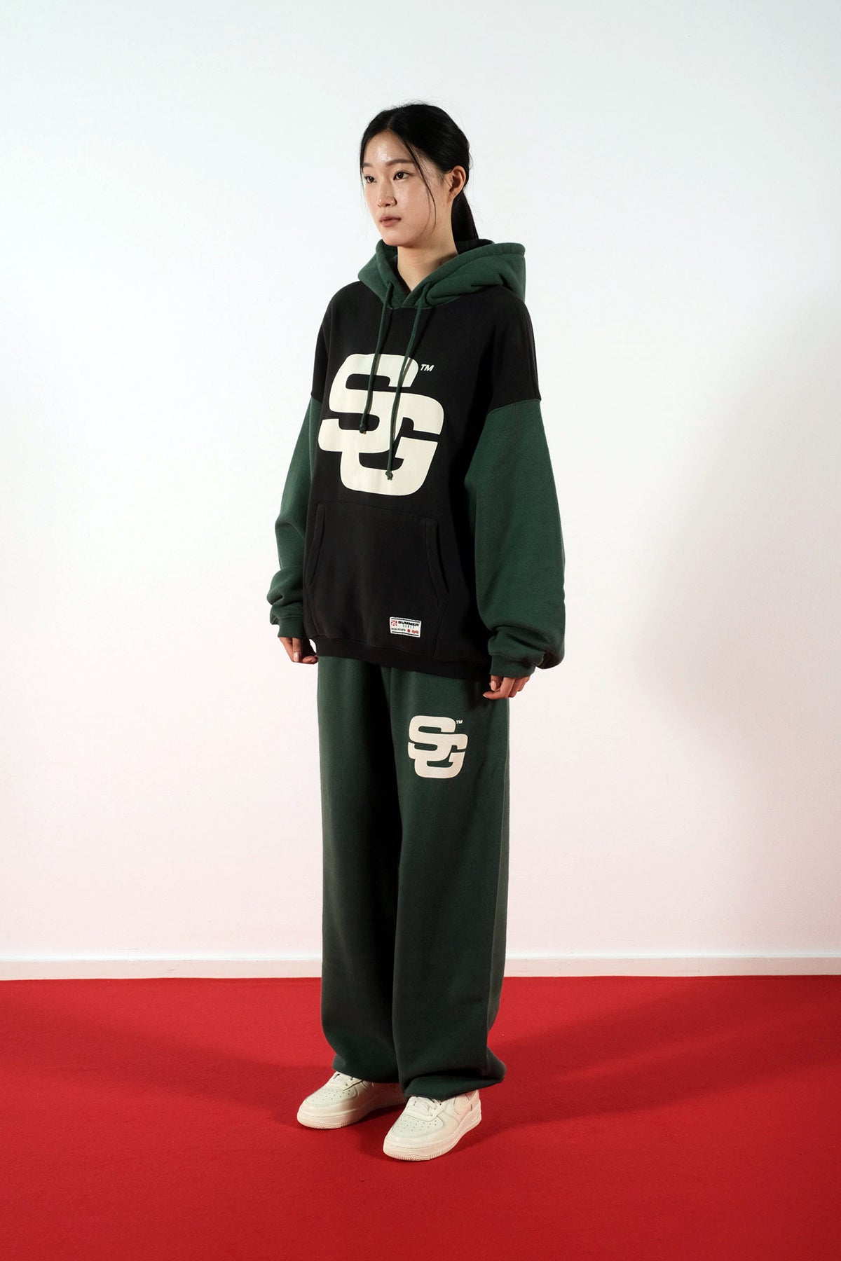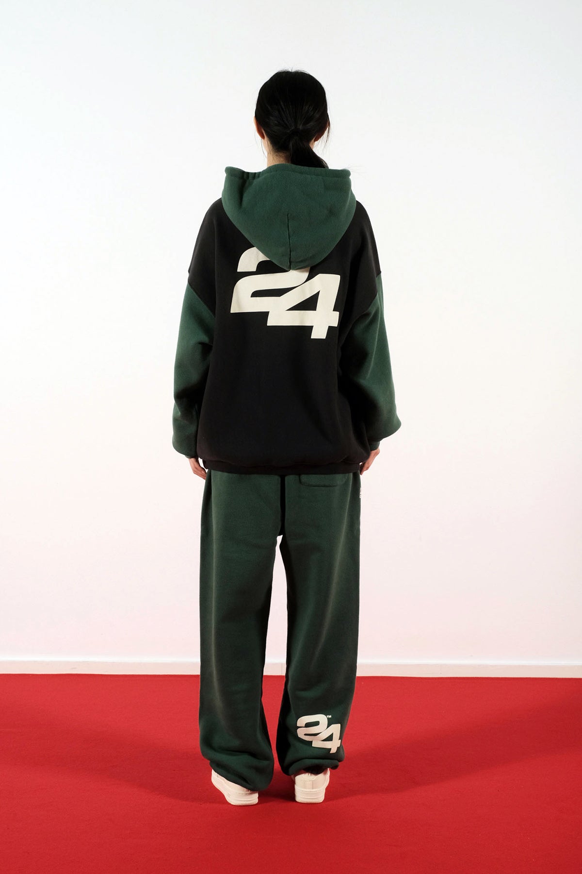 SG24 CONTRAST HOODIE - JET BLACK & HUNTER GREEN
