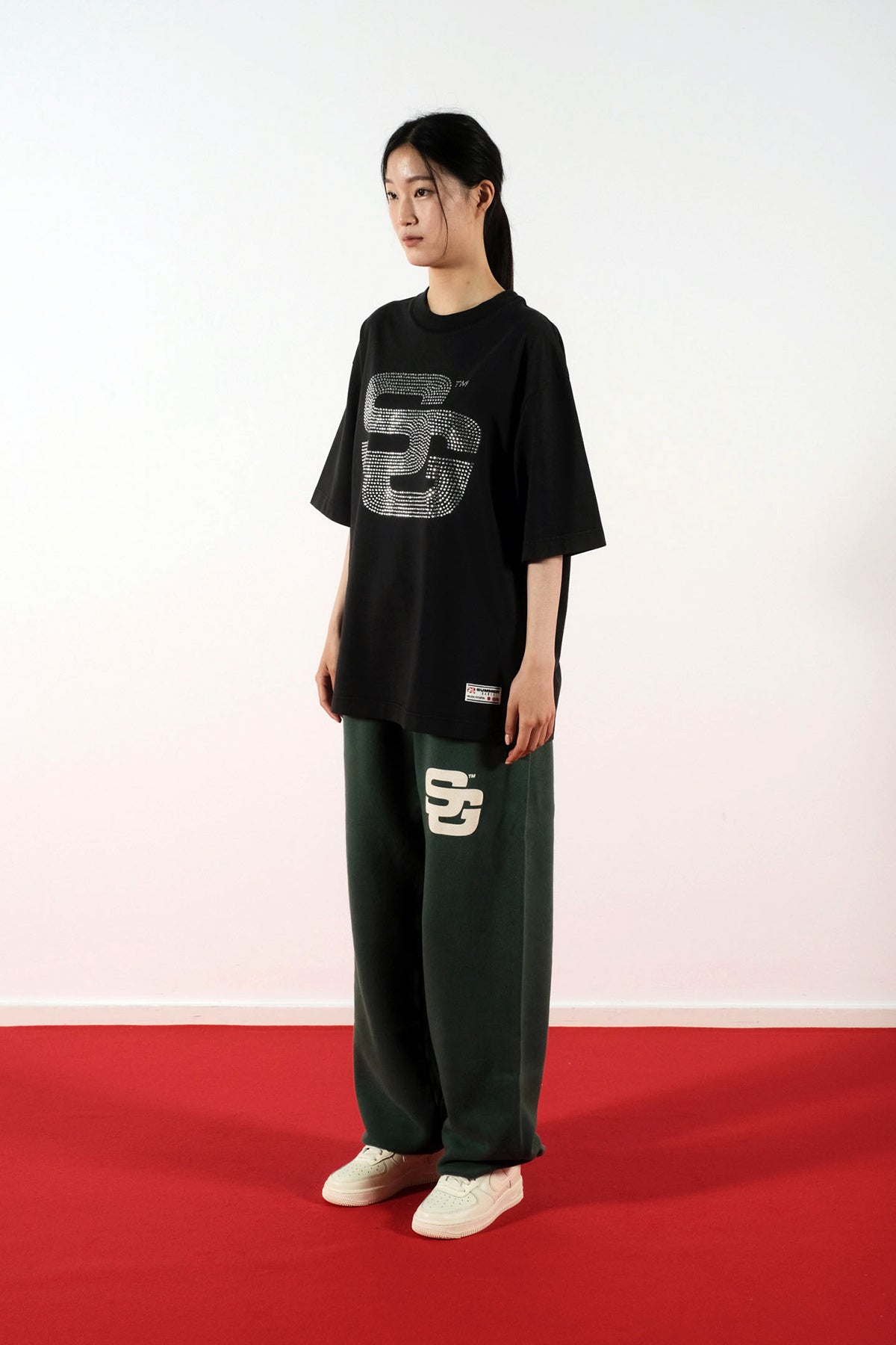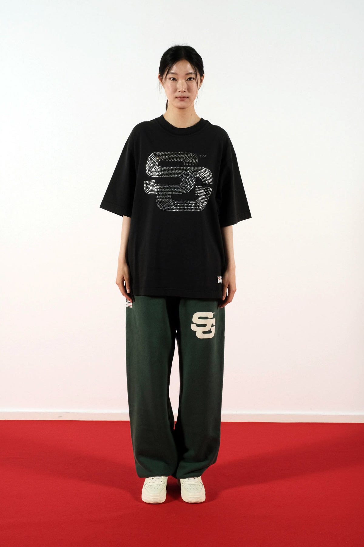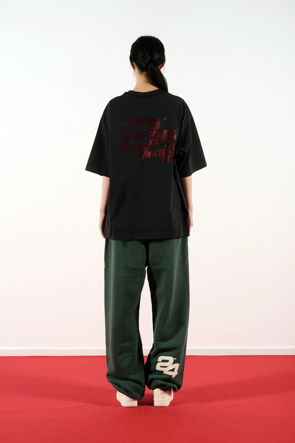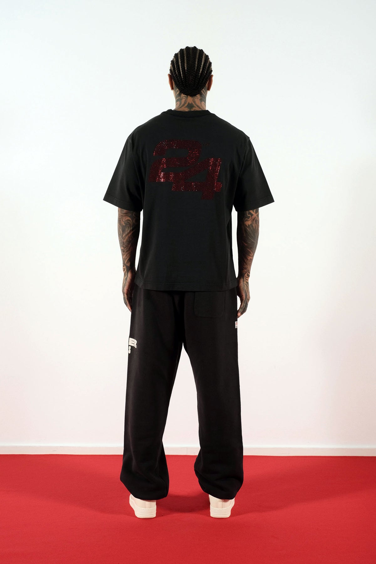 ATHLETIC FITTED TEE MADE OUT OF MIDWEIGHT, ULTRASOFT COTTON JERSEY WITH RHINESTONES PRINT AND BRAND TAG