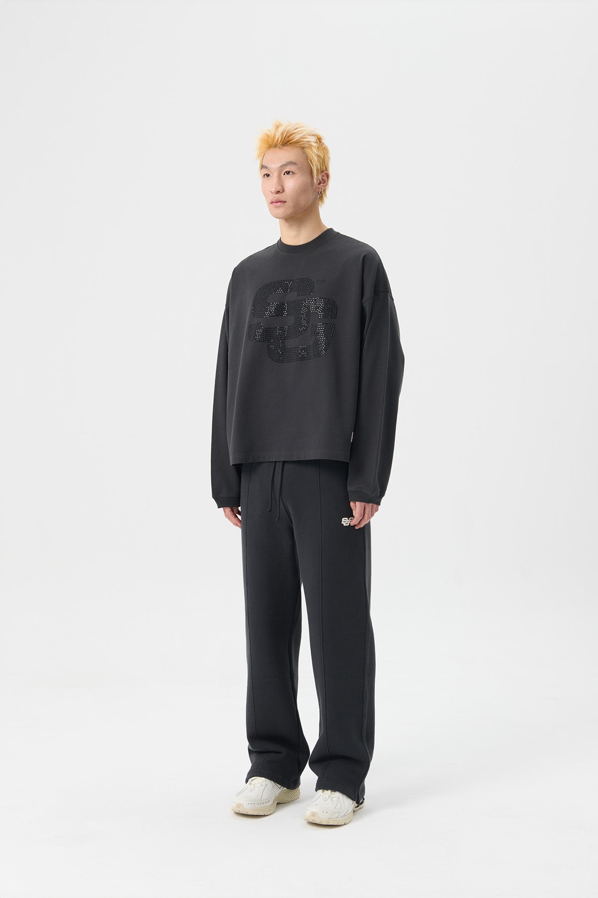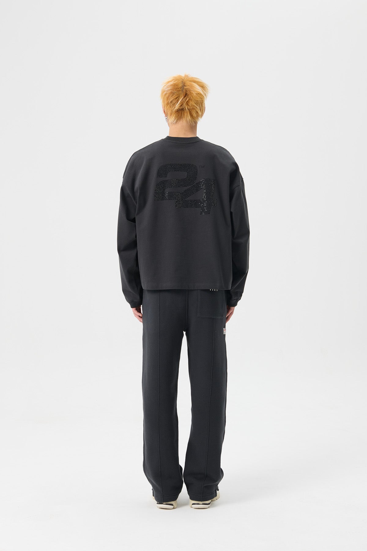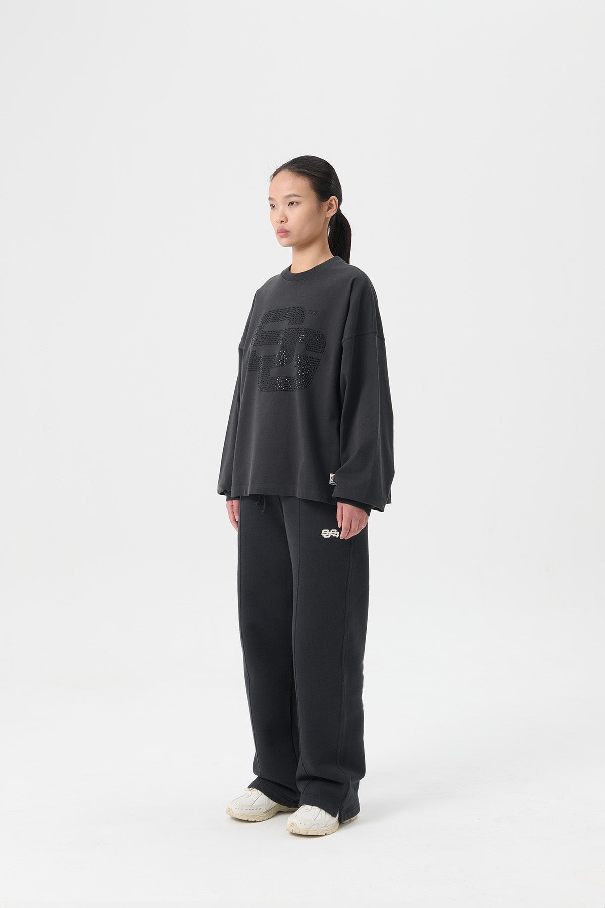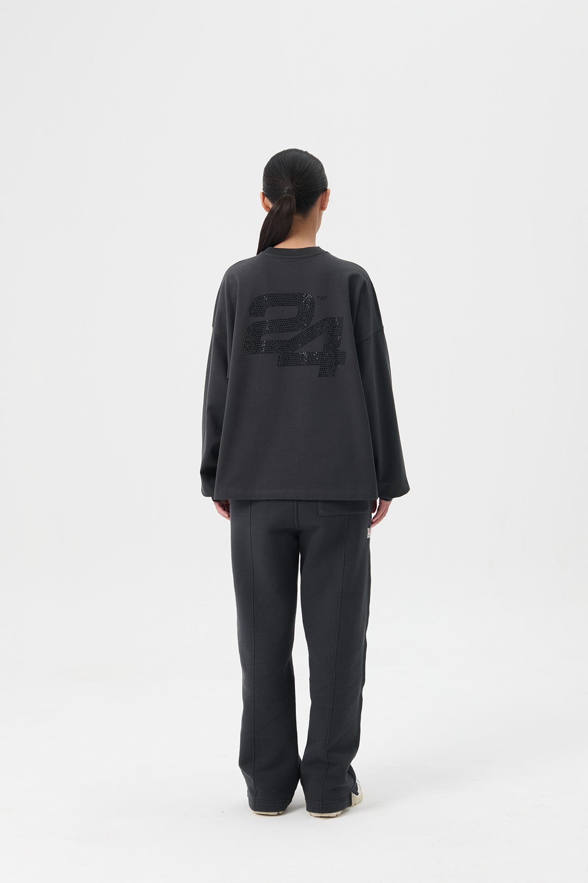 SG24 RHINESTONES LOGO LS TEE - JET BLACK