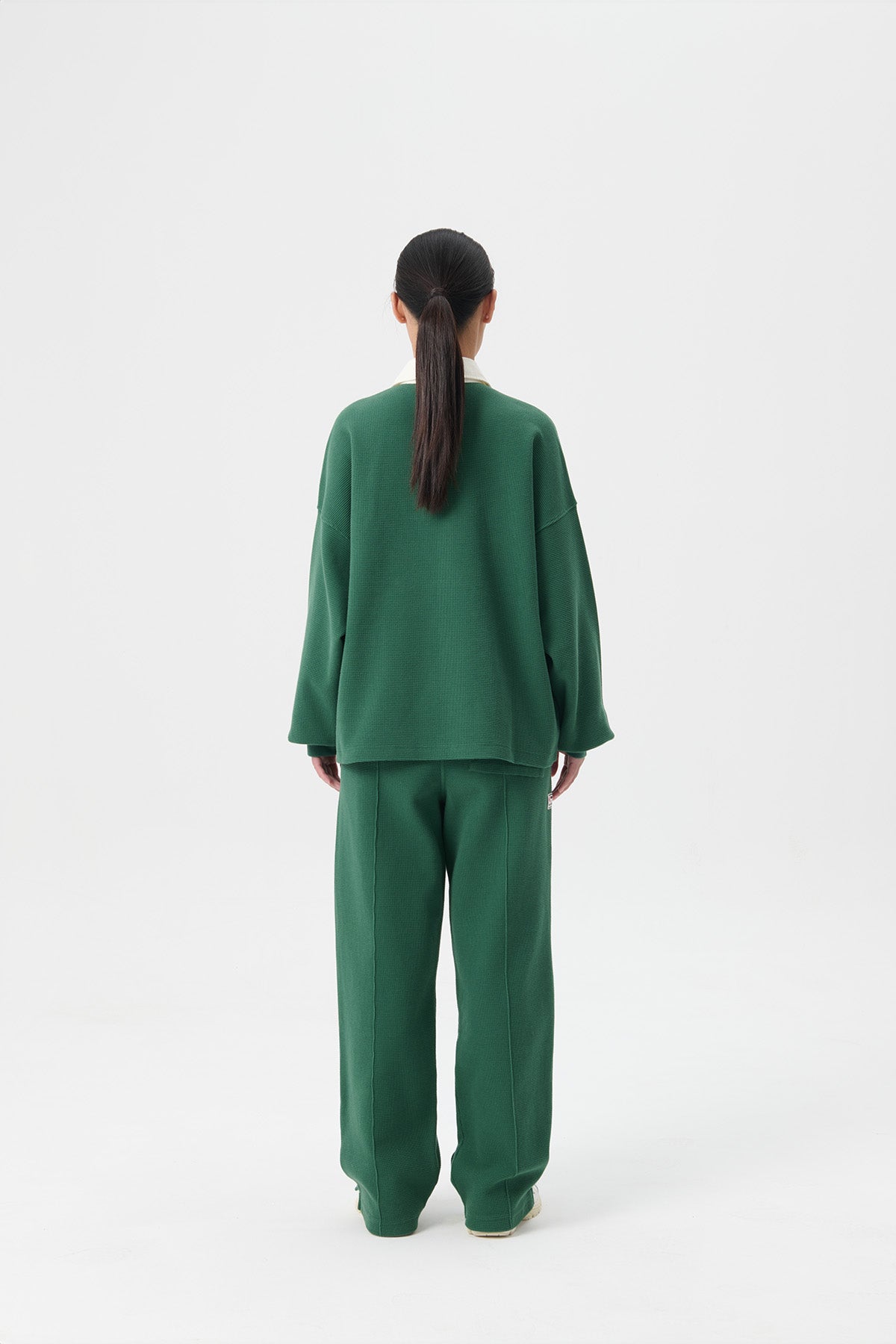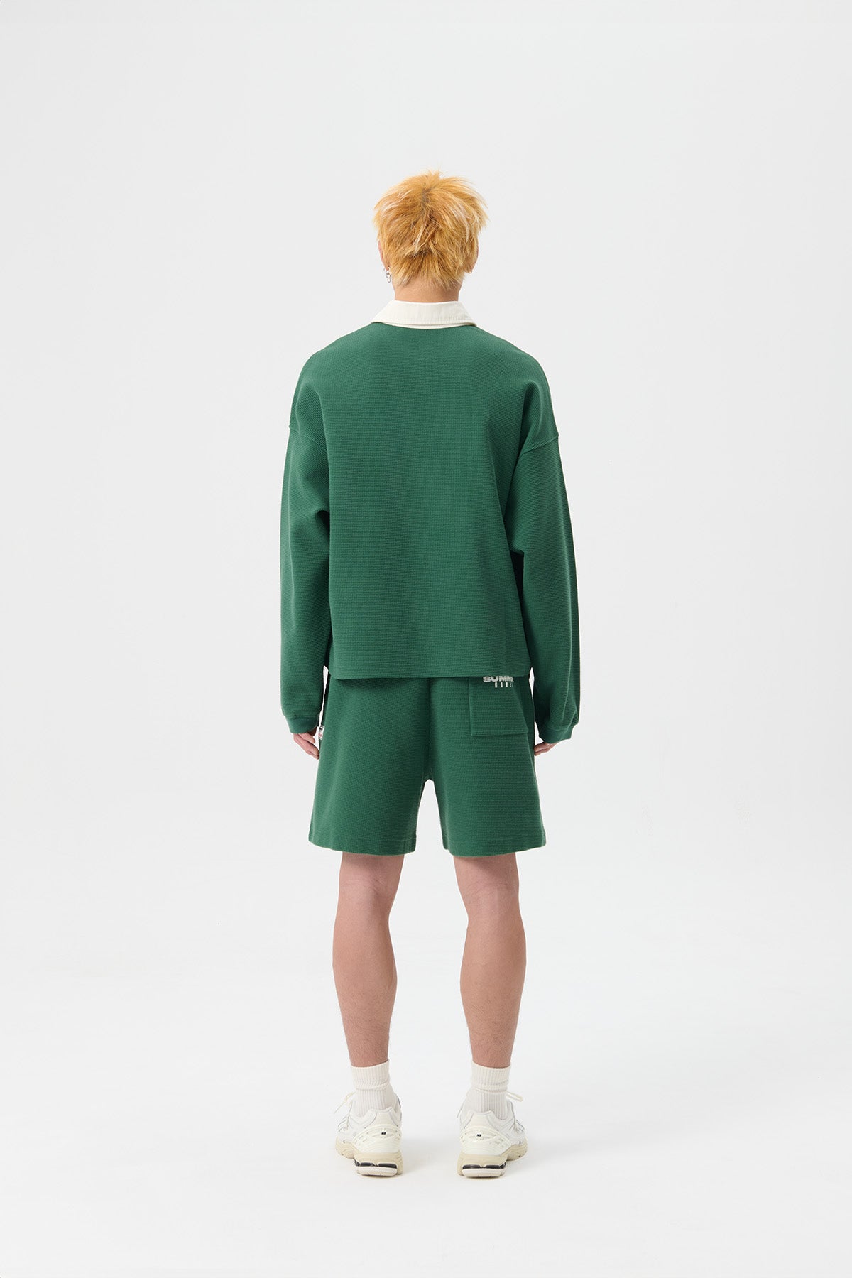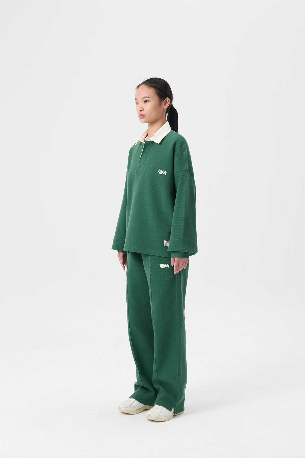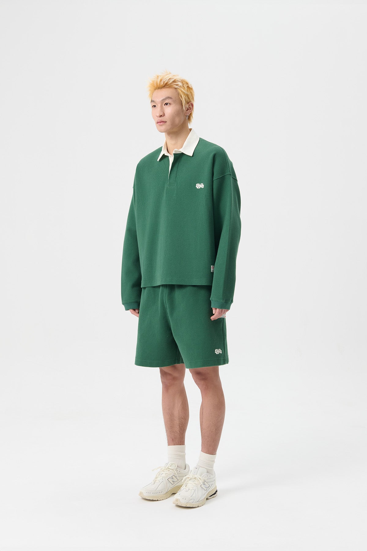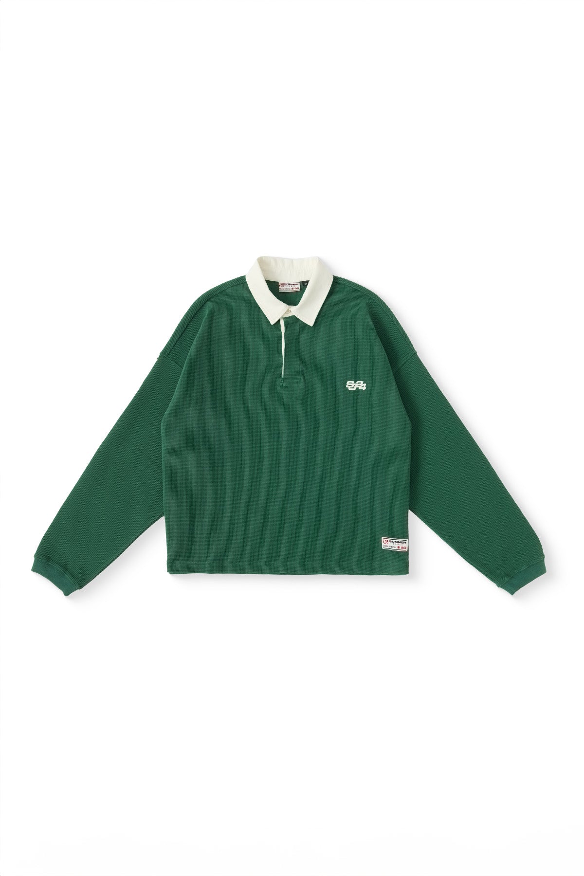 WAFFLE KNIT LS RUGBY POLO - HUNTER GREEN