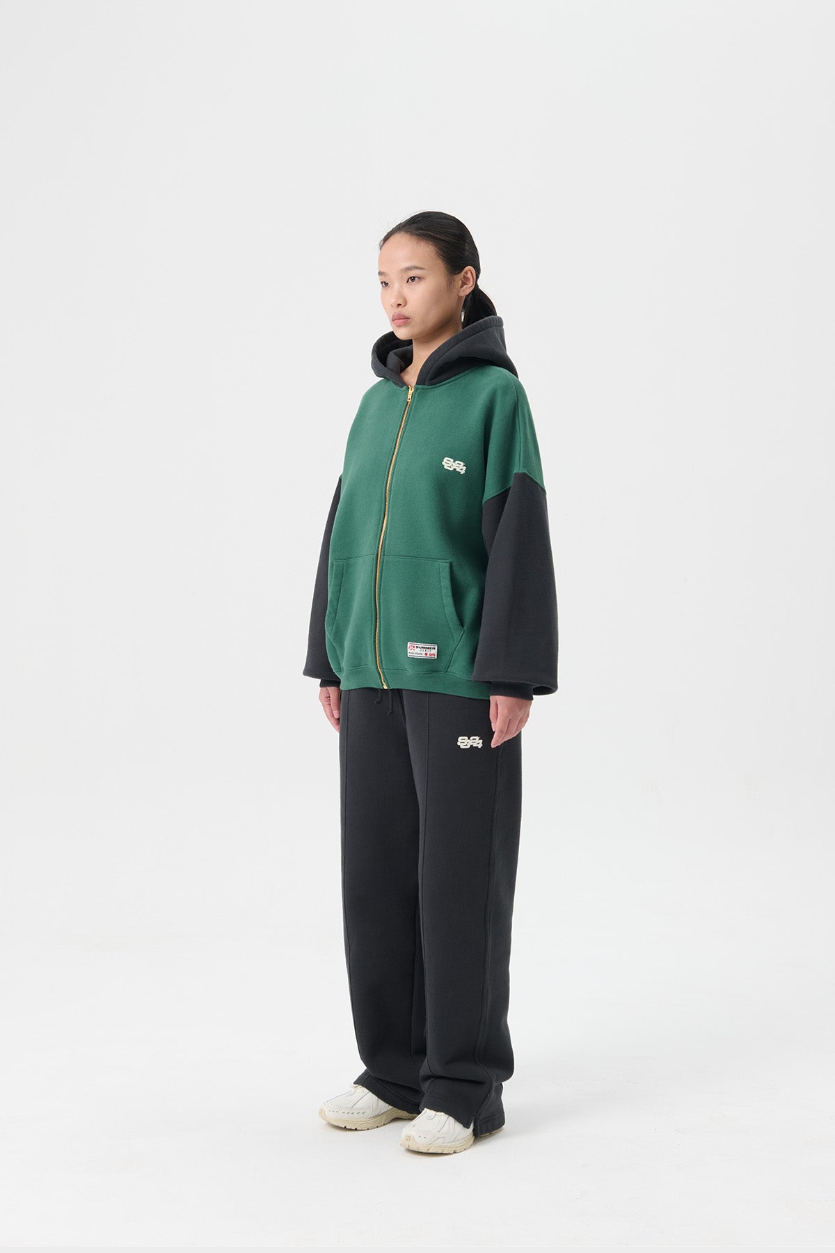 STACK LOGO ICON ZIP-UP HOODIE - HUNTER GREEN / JET BLACK